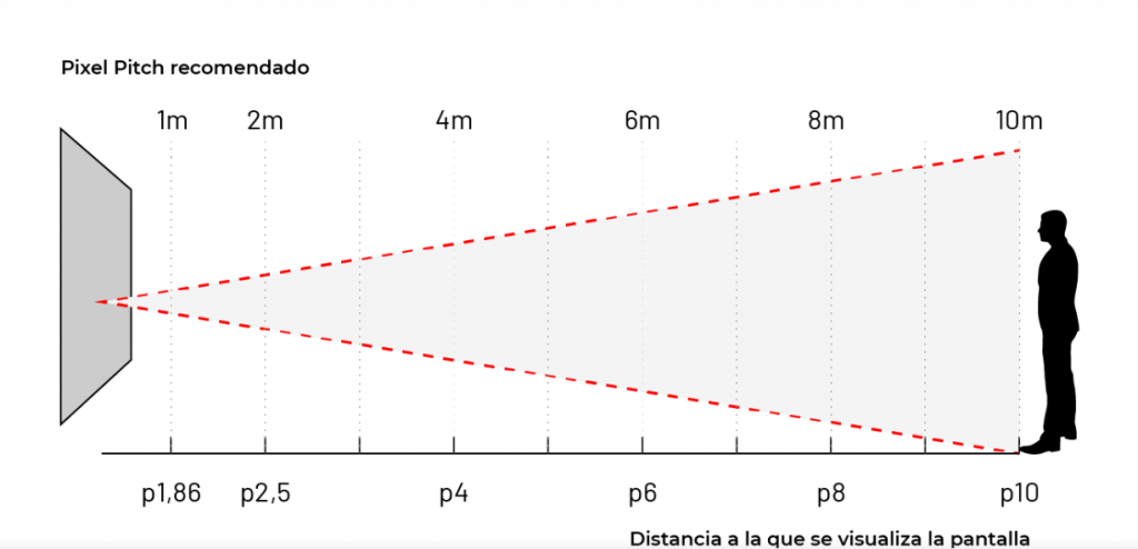 Eso significa que a menor Pitch, los LEDs están mas cerca unos de otros, por lo que la pantalla tiene mayor resolución.